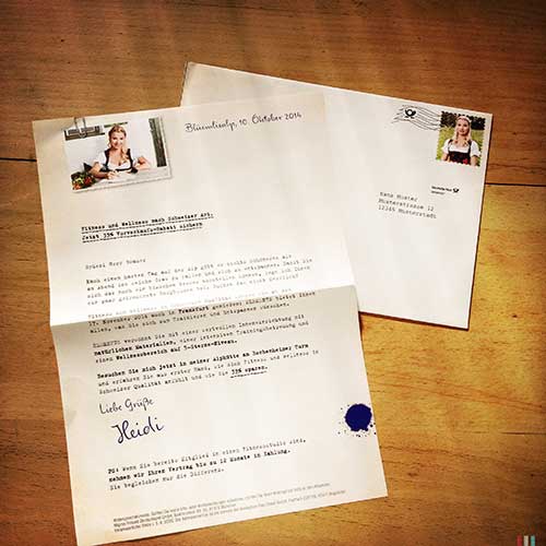 Eröffnungskampagne für die Schweizer Edelfitness-Marke ELEMENTS. Ersteröffnung eines Studios in Frankfurt am Main. Aussagen der erwachsenen «Heidi» werden kontrastiert mit einem Angebot für ein urbanes Publikum. Hauptmedium war ein DM mit Absender von «Heidi», ergänzt mit Anzeigen und Plakaten. Geplant waren auch Live-Acts mit Schauspielern in Firmen, in Frankfurts Innenstadt und dem Bankenviertel.